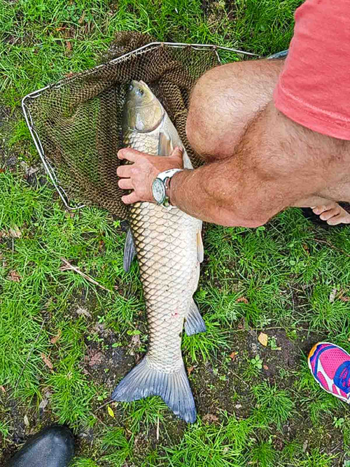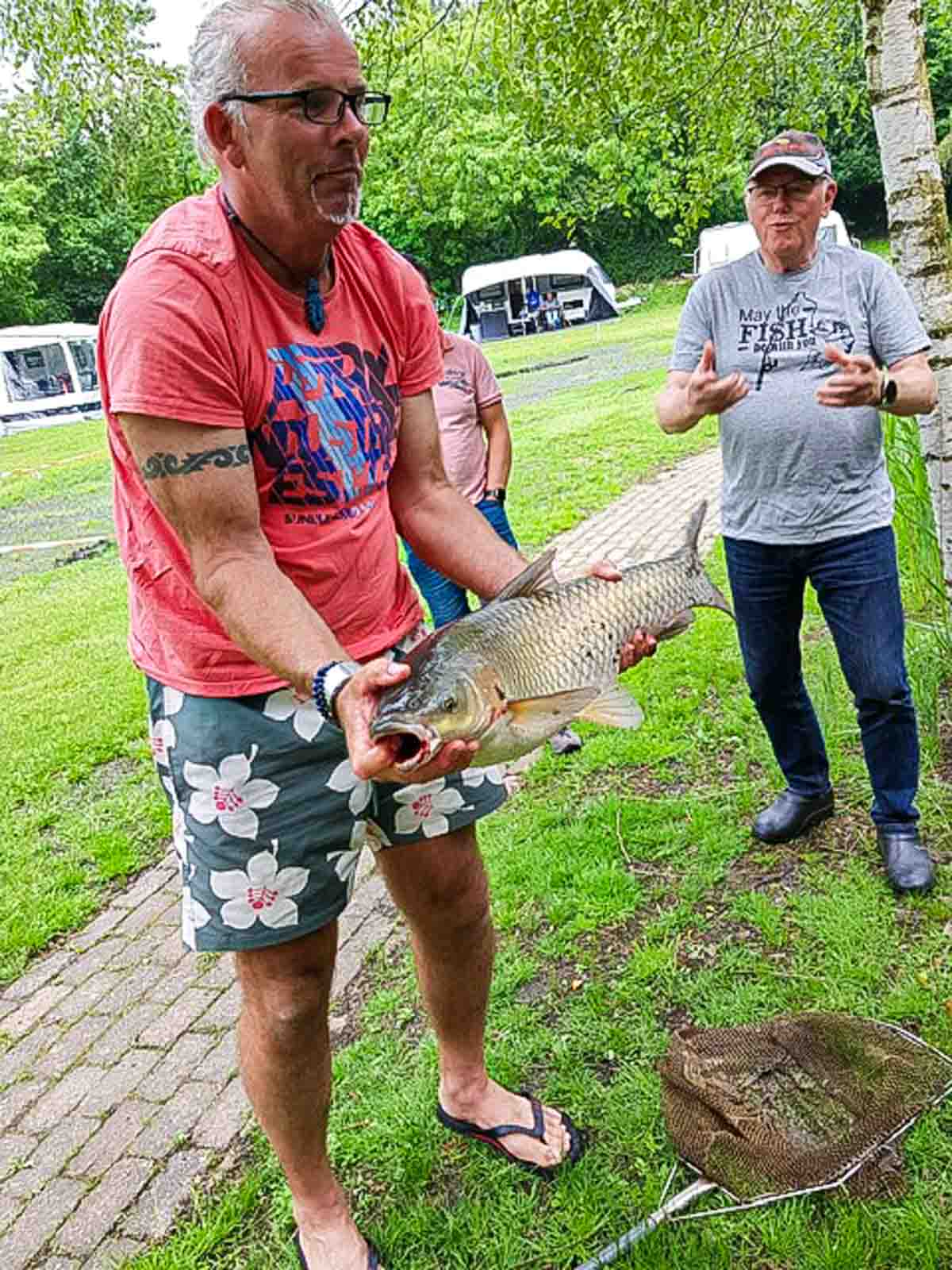 We hebben ook een vijver met de volgende soorten vissen: spiegelkarpers, lederkarpers, schubkarpers, winde, zeelt, giebel, paling en voorn.